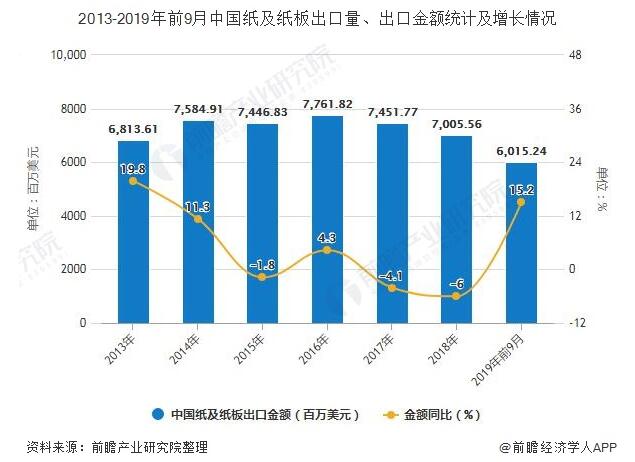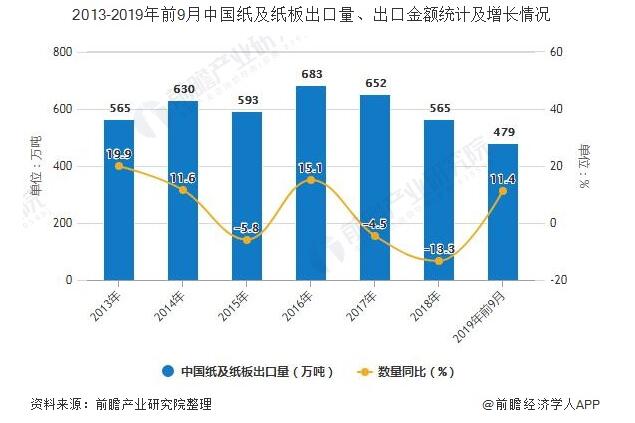 2019年前9月中國紙及紙板出口量達到479萬噸
