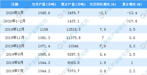 2019-2020年3月全國機制紙及紙板產量統計數據