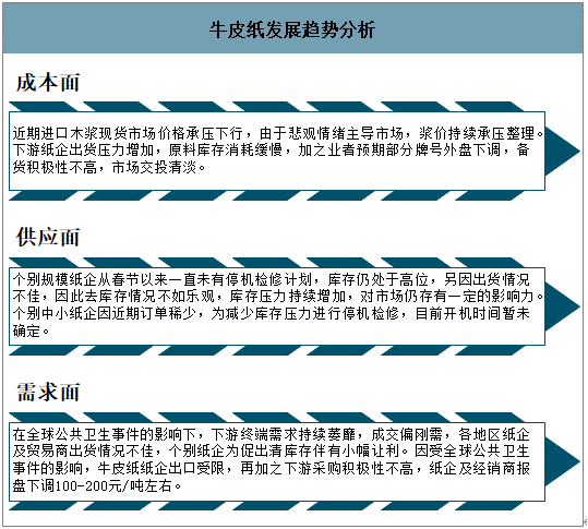 從成本面來看,近期進口木漿現貨市場價格承壓下行,由于悲觀情緒主導市場,漿價持續承壓。從供應面來看,個別規模紙企從春節以來一直未有停機檢修計劃,庫存仍處于高位,去庫存情況不容樂觀,庫存壓力持續增加,對市場仍存有一定的影響力。從需求面來看,在全球公共衛生事件的影響下,下游終端需求持續萎靡,各地區紙企及貿易商出貨情況不佳,個別紙企為促出清庫存伴有小幅讓利。
