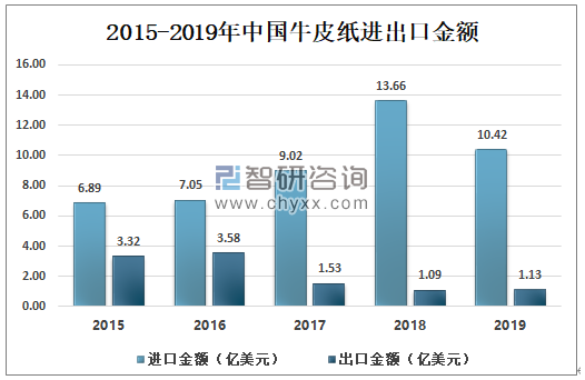 牛皮紙不像塑料難以降解,時間長了能夠與自然融為一體,最重要的是牛皮紙是一種可回收的再生資源。2019年中國牛皮紙進口金額為10.42億美元,比2018年進口金額減少2.24億美元。