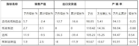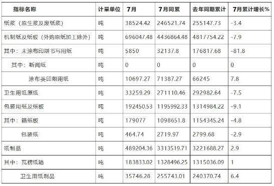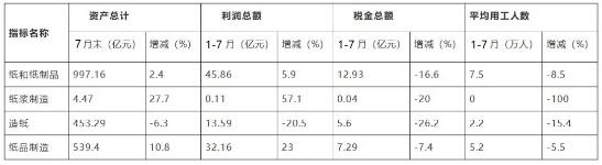 福建省 2020年1-7月份造紙及紙制品工業經濟效益概況