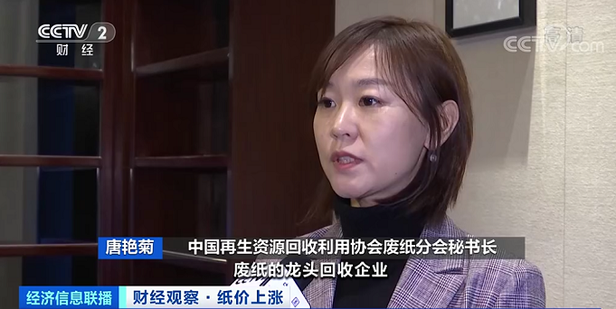 中國再生資源回收利用協會廢紙分會秘書長唐艷菊:就促使區域的這些具體的龍頭回收企業,發揮它的規模優勢,去穩定現在的末端生產企業的原料和市場的價格,國內廢紙的質量、回收量也會有大幅提升。