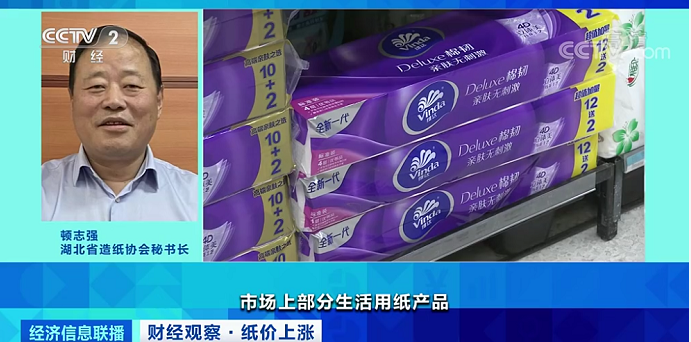 湖北省造紙協會秘書長頓志強:市場上部分生活用紙產品出廠價上調了10%-20%。