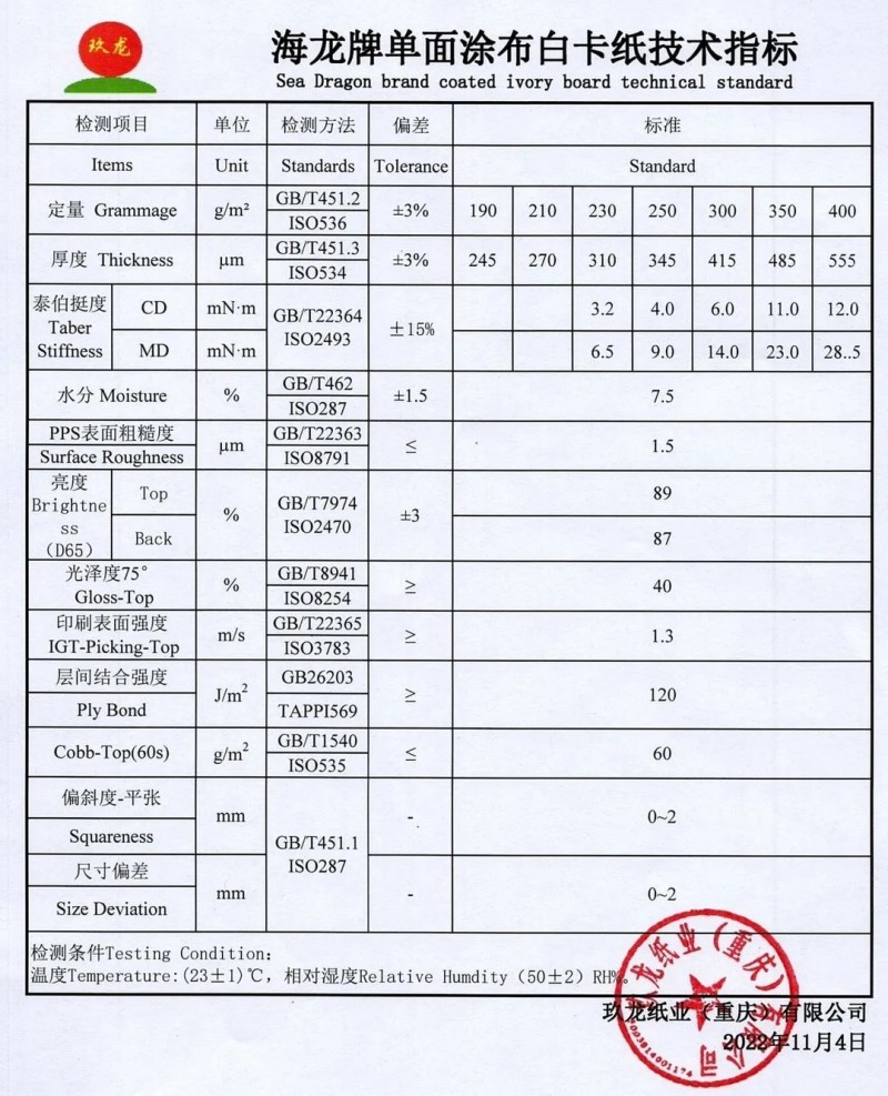 據(jù)重慶玖龍紙業(yè)官方消息,該公司PM33隆重推出了海龍牌高級涂布白卡紙、玖龍牌高松厚度涂布白卡紙,產(chǎn)品品質(zhì)、標準定位于高檔白卡。