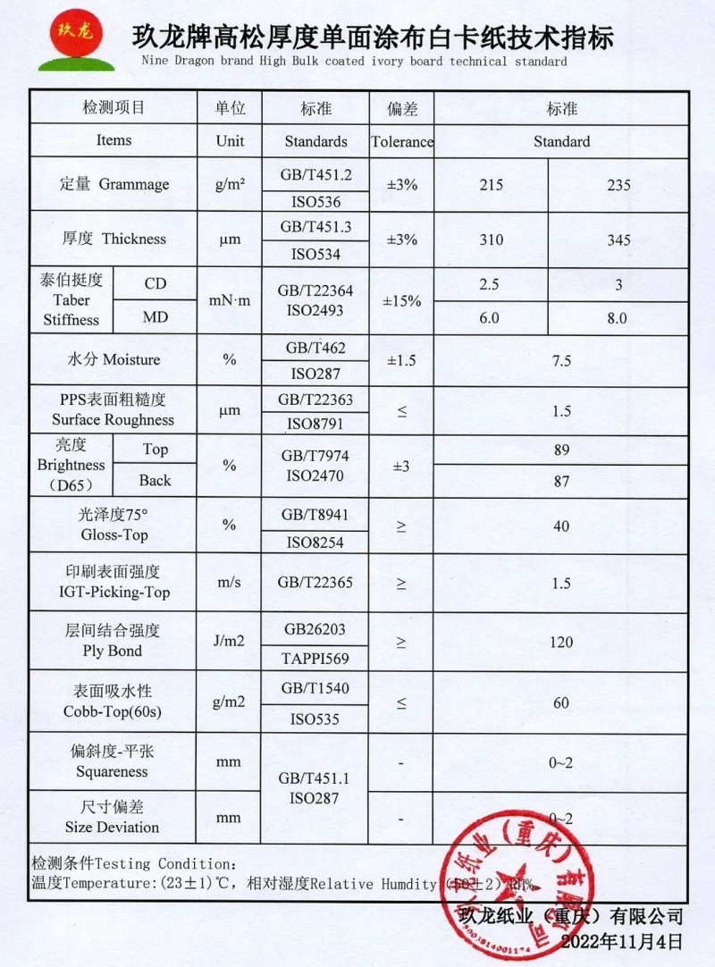 重慶玖龍兩款重量級產(chǎn)品的問世,填補了西部市場白卡紙生產(chǎn)領域的空白,也表明了玖龍集團進軍高檔白卡紙市場的決心和信心。目前,公司已有190/210/230/250/300/350/400克全海龍系足克白卡紙和215/235克玖龍牌高松厚白卡紙投放市場。