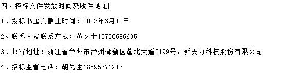 投標書送達地點:浙江省臺州市臺州灣新區蓬北大道2199號,新天力科技股份有限公司