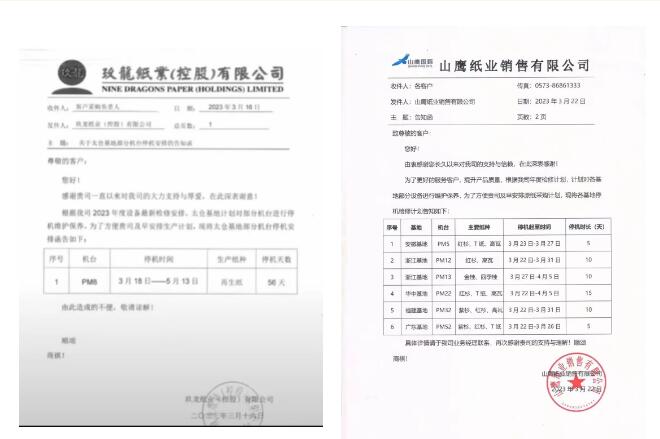 3月22日,包裝紙巨頭山鷹國際宣布大面積停機計劃,以應對原紙需求的持續縮水。十日前,包裝紙龍頭玖龍紙業也宣布了停機計劃,最長停機時間可達56天。