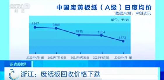 中泰證券輕工行業首席分析師 張瀟:無論是文化紙還是從箱板瓦楞紙,其實都是處在一個社會庫存下行比較快的階段,這也是一個需求回暖的表現。同時從紙價上來講,其實箱板瓦楞紙從3月開始,紙價也開始有一些回升了,目前大概回升了4%到5%。
