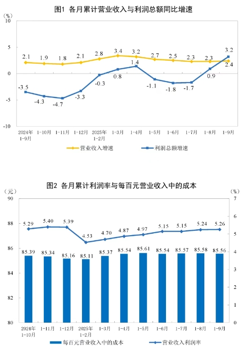 國家統(tǒng)計局工業(yè)司首席統(tǒng)計師于衛(wèi)寧解讀2025年1—9月份工業(yè)企業(yè)利潤數(shù)據(jù)表示,1—9月份,各地區(qū)各部門認真落實更加積極有為宏觀政策,培育壯大新經(jīng)濟增長點,高技術(shù)制造業(yè)、裝備制造業(yè)等新質(zhì)生產(chǎn)力較快增長,疊加低基數(shù)效應(yīng)影響,規(guī)模以上工業(yè)企業(yè)利潤增速繼續(xù)回升。具體表現(xiàn)為:工業(yè)企業(yè)利潤加快恢復(fù);工業(yè)企業(yè)營收增長加快;過半行業(yè)利潤增長,六成行業(yè)增速回升;高技術(shù)制造業(yè)帶動作用明顯;裝備制造業(yè)支撐有力,部分行業(yè)增長較快;不同規(guī)模類型企業(yè)利潤均有改善,私營和外資企業(yè)利潤明顯加快;營收利潤率回升。