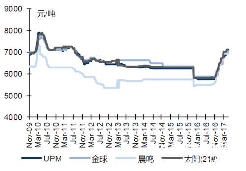 本周雙膠紙終端價(jià)格維穩(wěn)。市場(chǎng)價(jià)格:UPM6955元/噸;金球7050元/噸;金太陽(21號(hào))7112.5元/噸
