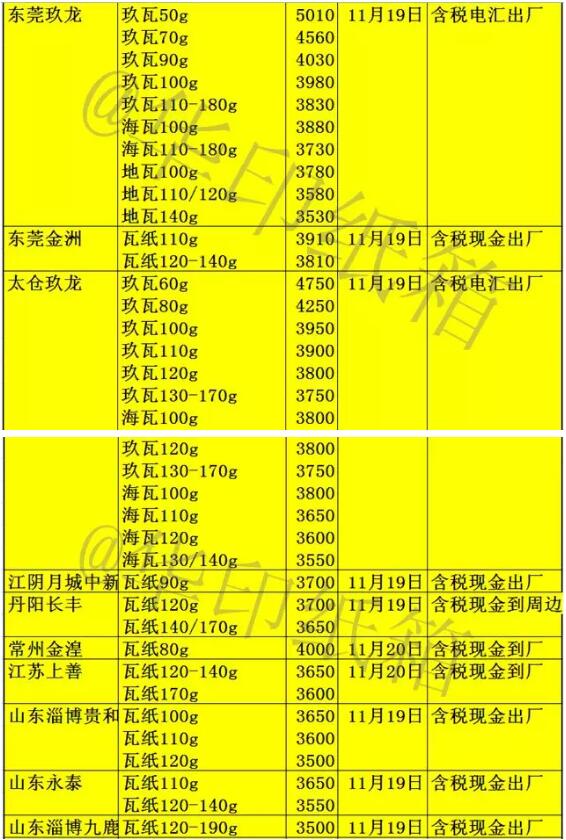 玖龍、山鷹、聯盛等近20家紙廠最新報價