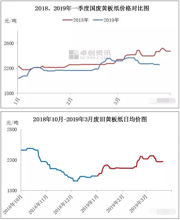 一季度國廢黃板紙價格延續了自2018年12月開啟的超跌反彈走勢,反彈的動力主要來自恐慌氣氛的短暫修復。