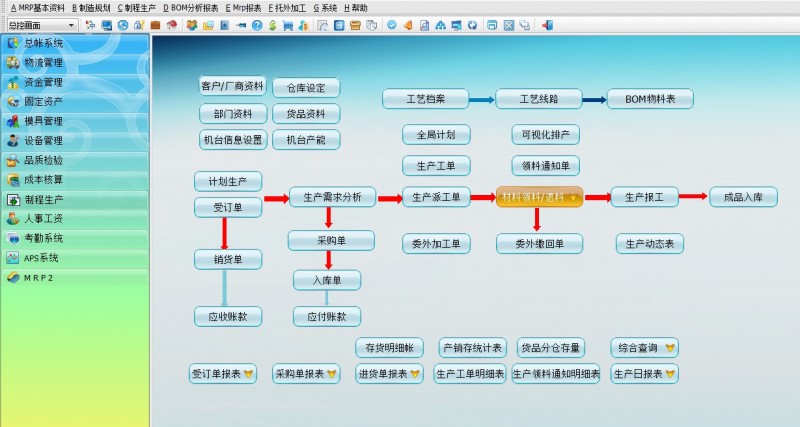 生產管理:BOM組合生產、簡易生產、工序生產、MRP計劃生產、全能生管、生產質檢、委外托工