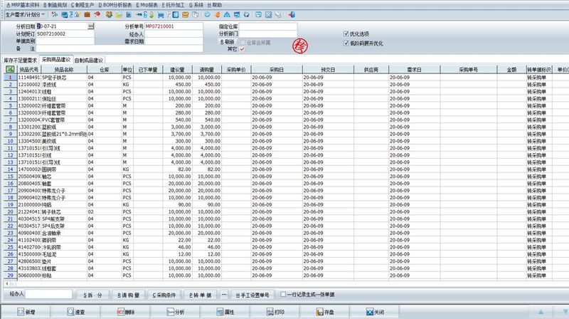進銷存管理:采購管理(詢價,申購,采購)、銷售管理(報價,訂單,銷貨)、庫存管理(進貨,調(diào)拔,發(fā)料,出貨,盤點,存量(成本,現(xiàn)存量,在制量,在途量,受訂量,上下限等))物流質(zhì)檢