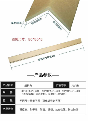 紙護角又名紙包角護角紙板邊緣板角紙紙角鋼,由牛皮紙、多層紗管紙和優質水溶膠疊壓制成,結構非常堅挺牢固,使用中可以抗擠壓和撞擊。并可回收再循環利用,對環境無害。廣泛應用于冶金、造紙、陶瓷、紙箱內襯、電子電器、化纖、建材、家具、地板等方面
