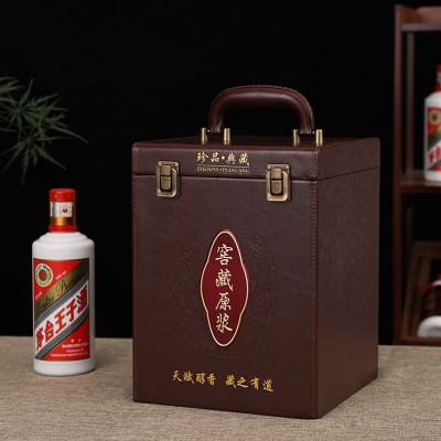 皮質酒盒白酒包裝盒白酒禮盒現貨通用手提定制高檔白酒包裝禮盒