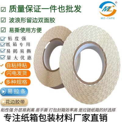 高粘海綿波浪留邊厚強粘性留邊易撕彩盒拉鏈紙箱快遞箱封口可訂制