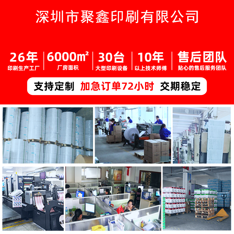 【深圳聚鑫印刷】提供,單層電腦紙及2-8聯無碳復寫電腦紙表格票據,適用于各種針式打印機,電腦紙單據產品打印走紙順暢,孔位準確,不易斷紙;多層電腦打印紙配頁整齊,打印同步好,單據表格不錯位。適用于各政府部門/企業/銀行/醫院,運用針式打印機實現多聯電腦紙表格票據套打,并可進行專色及彩色電腦紙單據/特殊快撈孔電腦紙印刷加工,以及打電腦紙單據流水號碼(紅色、黑色、藍色)。