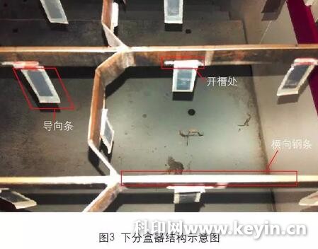 如圖3所示,將懸掛導向條的開槽處下邊沿做成斜角,磨低0.6mm,使導向條不會高出鋼板表面。當然,導向條屬于易耗品,必要時還需及時更換。