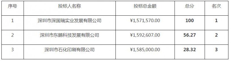 國家稅務總局深圳市稅務局印刷定點服務采購項目中標公告