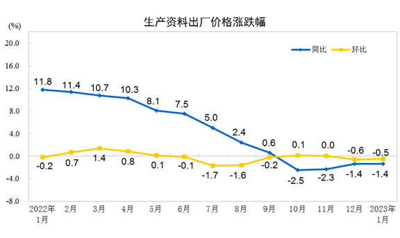 2023年1月份,全國工業生產者出廠價格同比下降0.8%,環比下降0.4%;工業生產者購進價格同比上漲0.1%,環比下降0.7%。