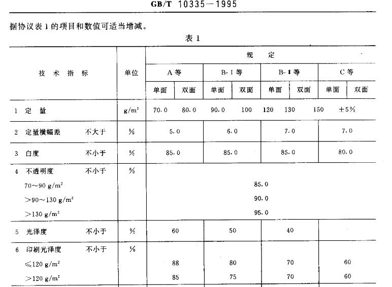 GB/T 10335規定了銅版紙的產品分類、技術要求、試驗方法、檢驗規則和標志、包裝、運輸貯存要求。